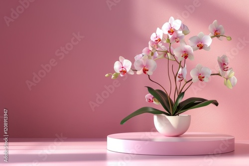 Elegant Pink Orchid Arrangement in Minimalist Interior Setting