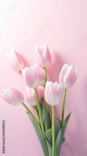 Elegant pink tulips in full bloom, soft pink hue against pastel background, ideal for springtime