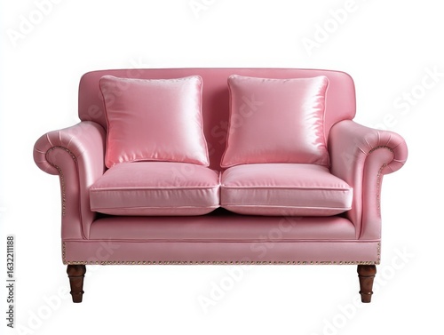 Elegant pink velvet loveseat isolated on white background