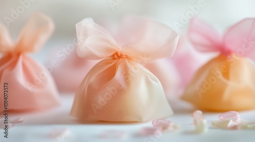 Elegant Pink Wedding Favor Bags with Satin Ribbon Bows
