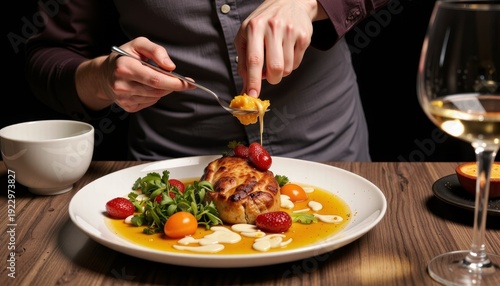 epicure, chicken, dish, plating, vegetable, sauce, dining, elegant, culinary, sophisticated, meal, presentation, plate, art, food, chef, delicious, savoury, preparation, style, garnish, receipe, cookery, taste, favor, decor, gastronomy, life events, hospitality, creative, appetising, dinner, table, ambience, serving, ingredient, palate, texture, visual