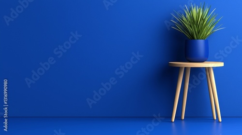 Elegant Potted Plant on Minimalist Stand Against Solid Royal Blue Backdrop Modern Indoor Scenery