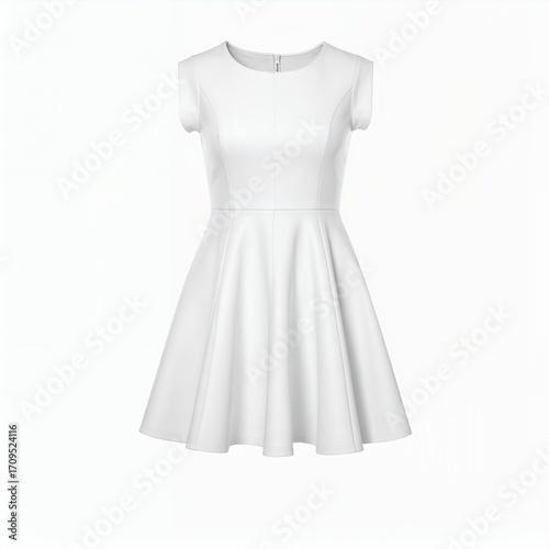 Elegant pristine white dress with a fitted bodice and flared skirt isolated on white