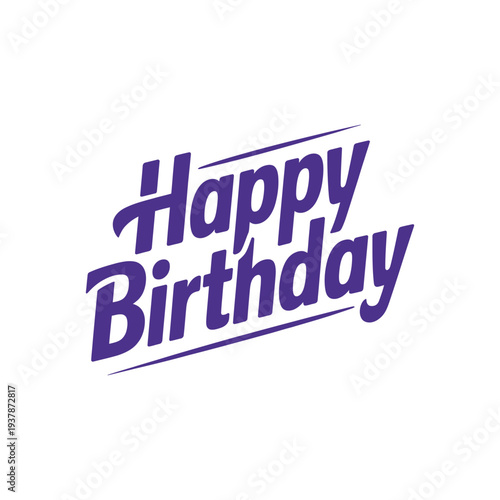 Elegant Purple Cursive Happy Birthday Hand Lettering Isolated on White