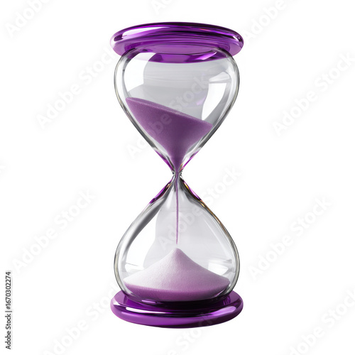 Elegant purple hourglass with flowing sand isolated on transparent background