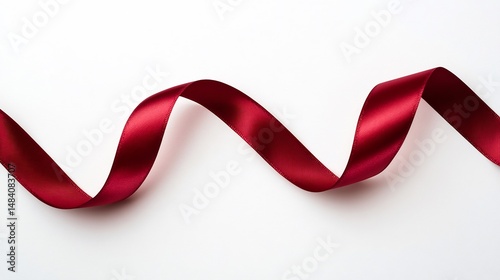 Elegant red gift ribbon forming soft loop isolated against a clean white backdrop