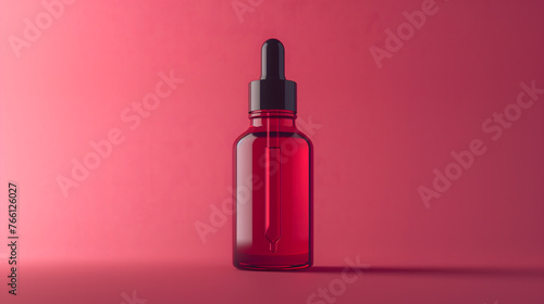 Elegant Red Glass Dropper Bottle on a Pink Background for Cosmetic Use