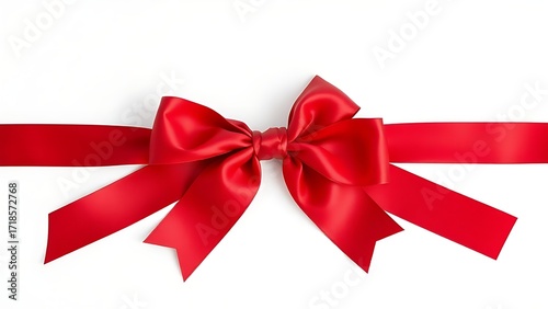 Elegant red satin ribbon with a bow, isolated on a clean white background for a gift concept.