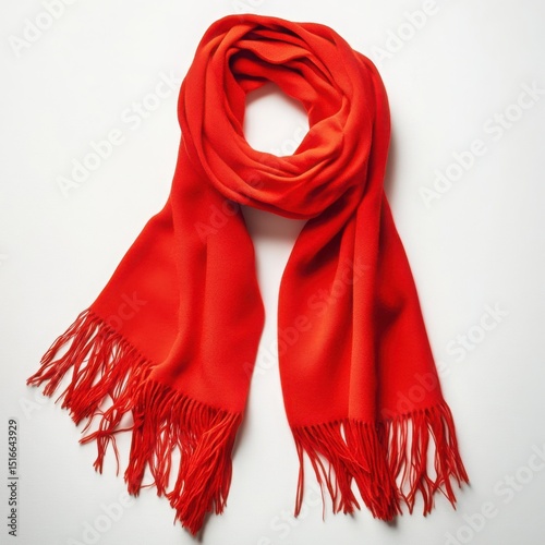 foulard, red, tassel, fashion, style, winter, warm, accessory, fabric, clothing, soft, wool, cashmere, elegant, enclosed, neck, cosy, trend, design, textile, vibrant, bright, detail, fringe, silk, pattern, comfort, luxury, gift, white, background
