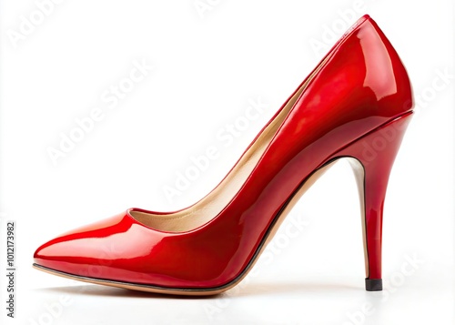 Elegant red stiletto high heel shoe isolated on white background, perfect for fashion and style themes