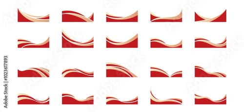 Elegant Red Wave Curve Shape Border and Corner Frame Vector Set Collection. Decorative Elements Corners, Borders, and Frames. Elegant Shape for Banners, Certificates, Invitations, and Covers Design