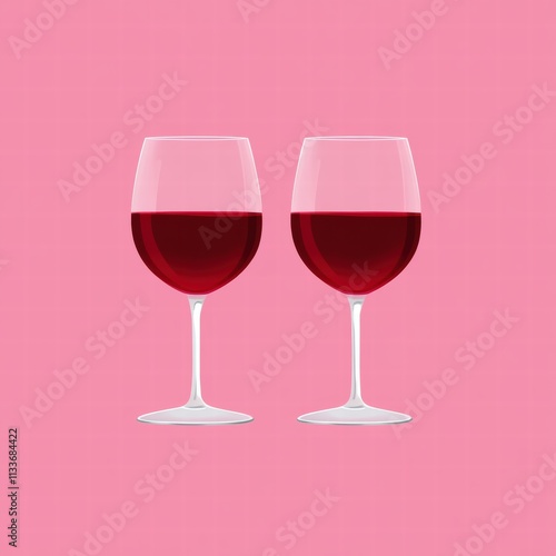 Elegant red wine glasses on a pink background, perfect for romantic settings, celebrations, or wine-related themes.