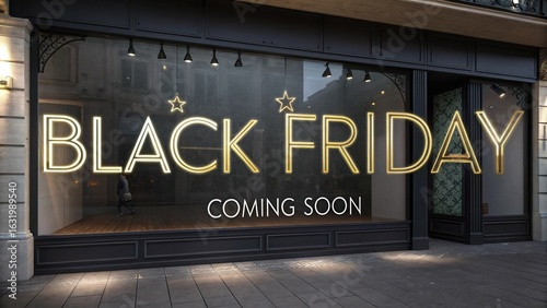 Elegant Retail Storefront with Glowing 'Black Friday Coming Soon' Sign