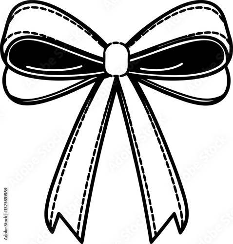 Elegant ribbon bow design, black and white line art decorative bow illustration