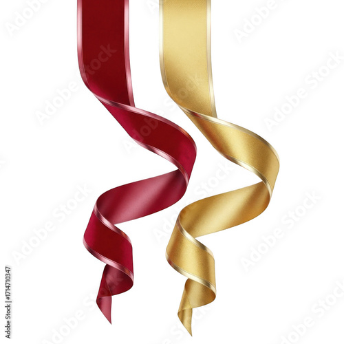 ribbon, silk, luxury, decoration, celebration, gift, festive, shiny, glossy, elegant, curved, swirl, drape, fabric, material, texture, gold, red, colours, design, element, graphic, isolated, object, concept, visual, style, art, transparent, background