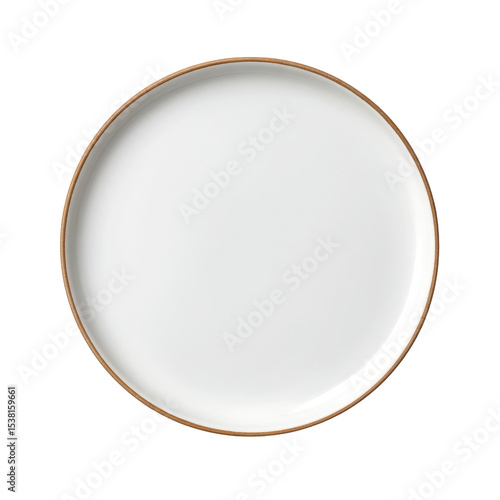 Elegant Round White Plate with Thin Gold Rim for Serving Gourmet Dishes and Culinary Presentations Transparent background or png