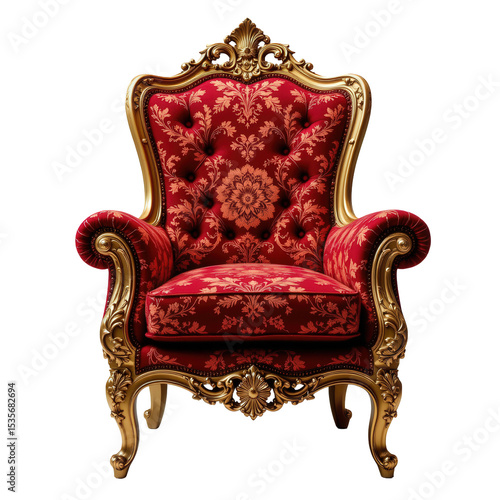 Elegant Royal Red Chair with Golden Accents and Intricate Patterns in Classic Design for Luxurious Interiors