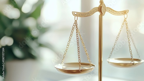 Elegant shot of a brass legal scale on a white background, casting subtle shadows for a classic, timeless look