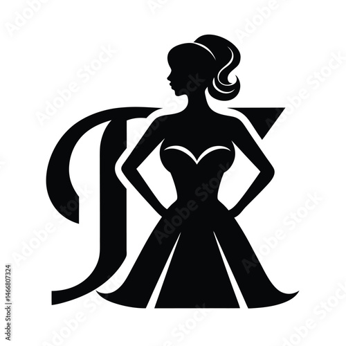 Elegant silhouette of a woman in a gown with artistic lettering suitable for fashion brands and logos