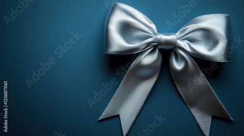 Elegant silver bow resting on a deep blue background, perfect for celebrating special moments and adding a touch of charm