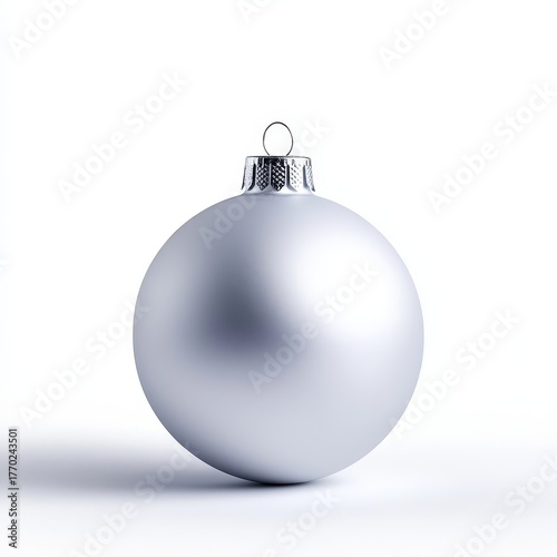 Elegant silver Christmas ornament on clean white background; perfect for holiday marketing, seasonal promotions, and festive design needs