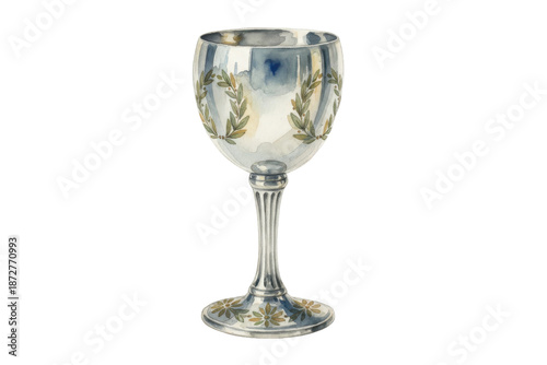 Elegant Silver Goblet Adorned with Laurel Wreath Motifs Depicting Delicate Watercolor Artistry