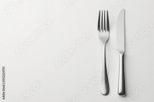 Elegant silver knife and fork, pristine white backdrop, equipment, luxury