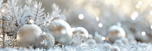 Elegant Silver Shining Christmas Background With Ornaments and Sparkling Lights in Festive Atmosphere