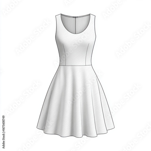 Elegant sleeveless white a line dress with intricate eyelet detailing and a subtle belt isolated on white background