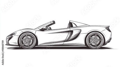 Elegant Sport Car Sketch with Open Roof and Sleek Design
