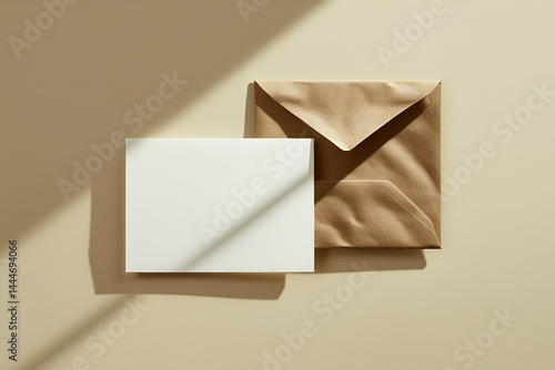 stationery, branding, design, template, invitation, card, envelope, paper, craft, beige, shadow, sunlight, minimal, modern, elegant, clean, simple, background, texture, surface, marketing, advertising, corporate, business, letter, postcard, message, communication, graphic, resource, illustration, art, visual, style, aesthetic, trend, creative, concept
