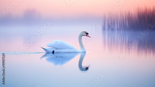 Elegant Swan Glides Across Still Water: Stunning Nature Photography