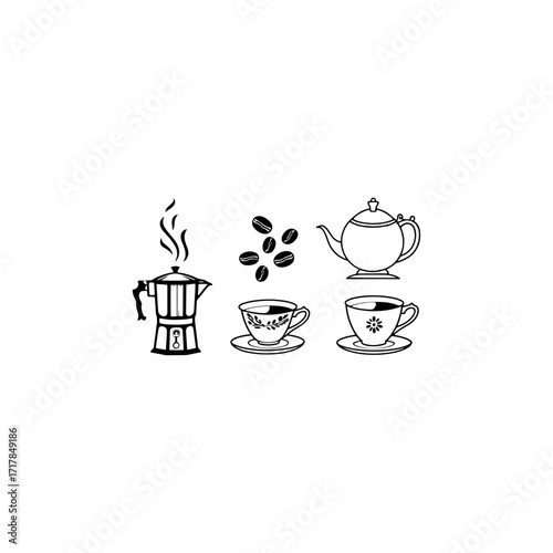 Elegant Tea Cup & Teapot Silhouettes - Drinkware Icon Set
