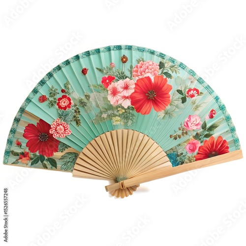 Elegant Teal Floral Hand Fan A Beautiful and Functional Accessory for Summer