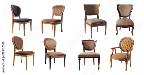Elegant Variety of Wooden Dining Chairs for Home and Restaurant Decor, isolated on transparent background