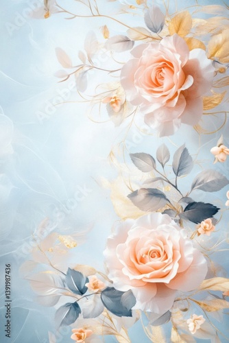 flower, rose, pink, blossom, bloom, floral, nature, delicate, soft, gentle, beauty, wedding, romantic, design, art, watercolor, illustration, tree branch, leaf, grey, light, airy, graceful, background, pastel, texture, feminine, elegant, artwork, decorative, serenity, aethereal, abstract, shades, tone, composition, garden, springtime, botany, plant, stem, detail, freshness, vibrant, natural, style, arrangement