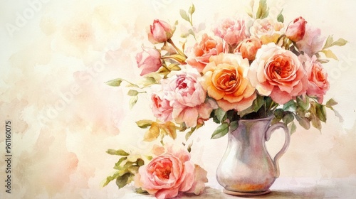Elegant Watercolor Roses Bouquet in Soft Pastel Hues for Beautiful Home Decor
