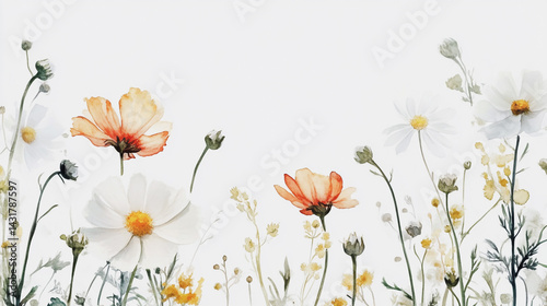 Elegant wedding invitation card background . Minimal hand painted watercolor Chamomile flowers texture template background. Design for wedding, vip cover, poster, rsvp moderncard.Valentine's Day