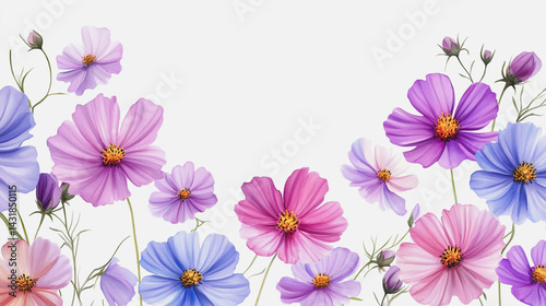 Elegant wedding invitation card background . Minimal hand painted watercolor Cosmos flowers texture template background. Design for wedding, vip cover, poster, rsvp moderncard.Valentine's Day