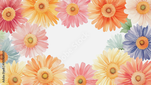 Elegant wedding invitation card background . Minimal hand painted watercolor Gerbera flowers texture template background. Design for wedding, vip cover, poster, rsvp moderncard.Valentine's Day