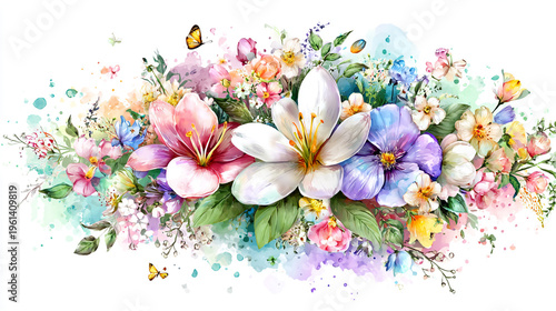 Elegant wedding invitation card white background . Minimal hand painted watercolor Lilly flowers texture template background. Design for wedding, vip cover, poster, rsvp modern card.Valentine's Day