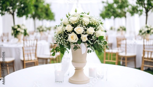 wedding, reception, decor, rose, white, flower, table, setting, event, centrepiece, celebration, elegant, vase, arrangement, romantic, love, ceremony, party, decoration, floral, greenery, blossom, foliage, botanical, bouquet, festive, candle, indoor, fresh, beautiful, background, tablecloth, catering, formal, design, ornate, luxury, refined, detail