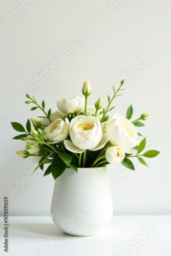 Elegant white blossoms in a simple vase, a serene and minimalist floral arrangement