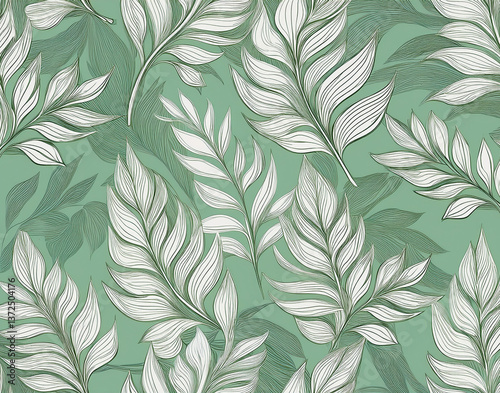 seamless, pattern, botanical, leaf, white, pastel, green, elegant, background, design, print, textile, wrapping, paper, fabric, nature, soft, foliage, floral, organic, decorative, trendy, modern, abstract, stylish, delicate, minimalist, gentle, natural, light, vector, repeating, wallpaper, surface, subtile, luxury, contemporary, digital, art, detailed, symmetric, lush, graphic, environmentally friendly, handcraft, airy