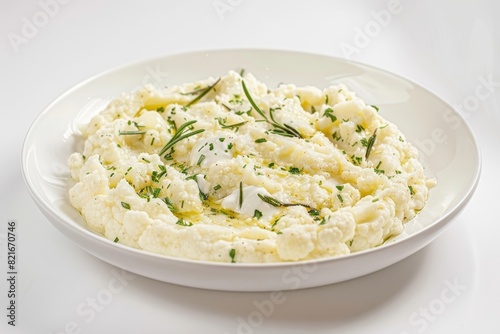 Elegant White Bowl Presentation of Garlic Mashed Cauliflower