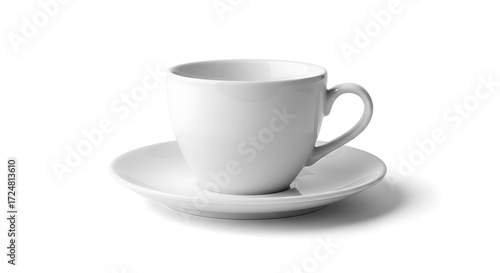Elegant White Coffee Cup and Saucer Isolated on White Background