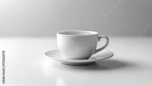 Elegant White Cup and Saucer on a Clean Surface.