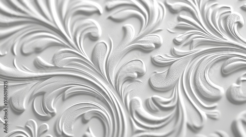 Elegant white embossed floral pattern with intricate details and smooth textures, creating a sophisticated look.