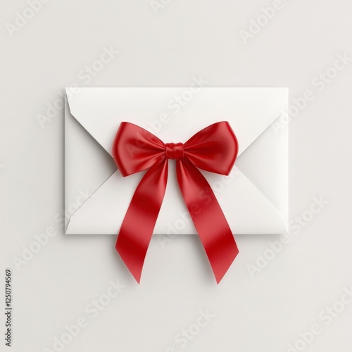Elegant White Envelope with Red Bow on a Soft Neutral Background