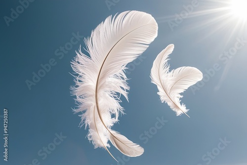 Elegant White Feathers Floating Against a Crystal-Clear Canvas for an Enchanting Levitation Experience